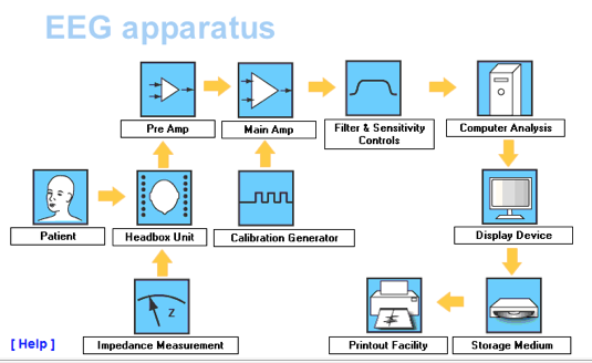 The EEG machine is a complex piece of equipment and is made up of numerous electronic components. It can be simplified by breaking it down to the main parts.